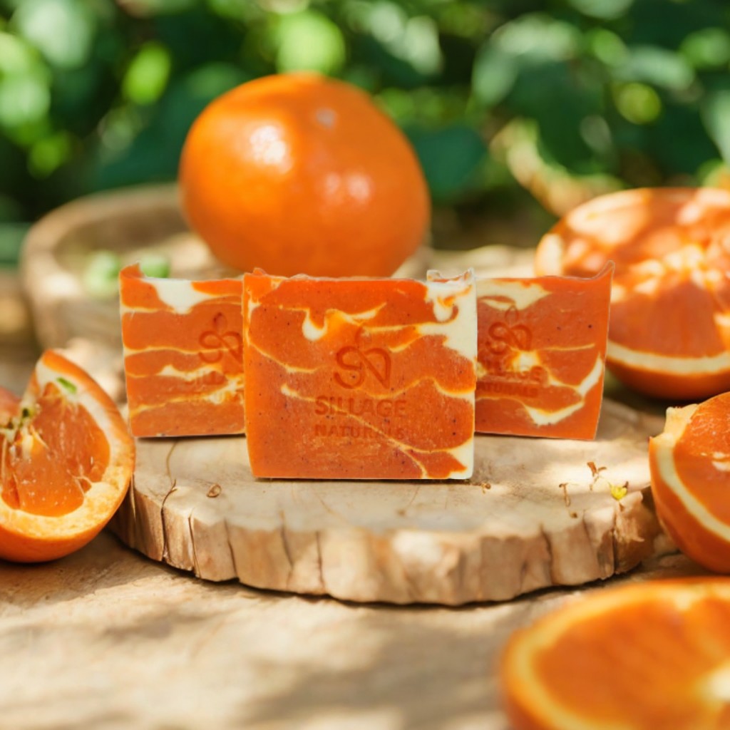 Sillage Naturals Orange Turmeric Soap is a 100% natural handmade soap crafted using the traditional cold process method. This revitalizing bar is part of our growing range of organic soaps in Pakistan, designed for those seeking pure, chemical-free skincare with visible results.
